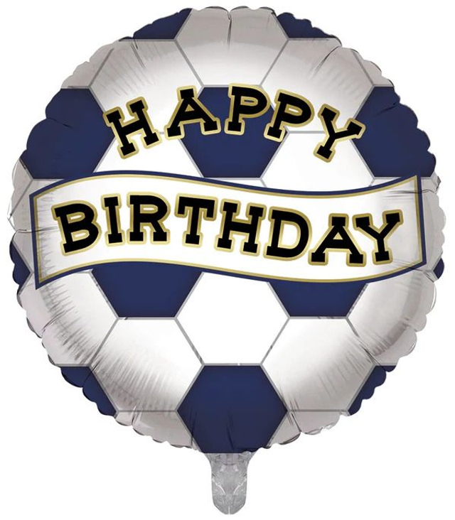 18" ROUND RED AND WHITE SOCCER HAPPY BIRTHDAY FOIL